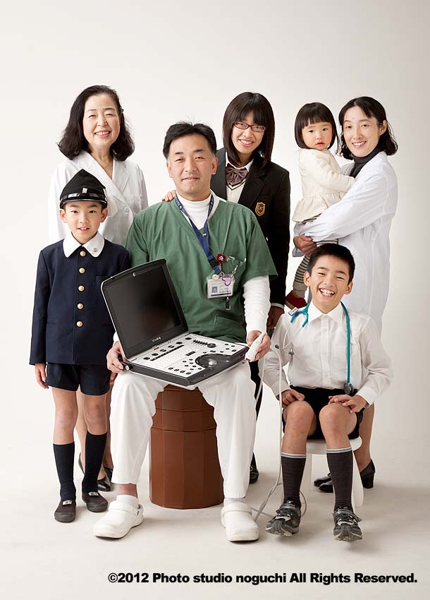 今年は仕事着で写すと決めたそうで、白衣で写真館にお見えになりました。